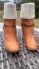- Caramel brown smooth leather upper with off white faux fur cuff