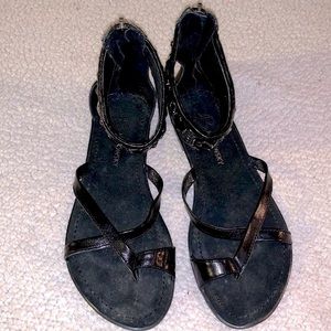 B. Makowsky Black Jeweled Zip-up Sandals — Deco Accents — 7
