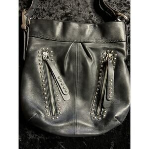 B. Makowsky Black Leather Olympia Studded Bag NWT Crossbody