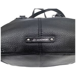 B Makowsky Black Leather Shoulder Bag Foldover Tote BM40415M