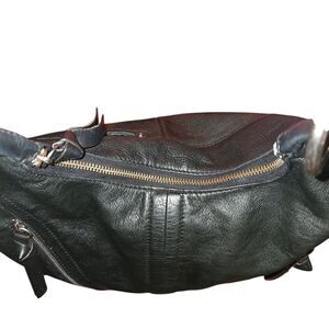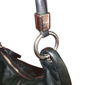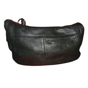 B Makowsky Black Pebble Leather Shoulder Hand Bag Purse Leopard Lined