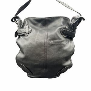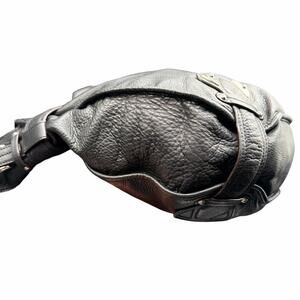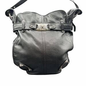 Keywords: B Makowsky bag, leather hobo, slouchy shoulder bag, black leather purse, soft leather, belted hobo, Y2K revival, edgy chic, designer leather.