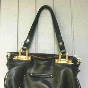 B. Makowsky Black Shoulder Bag Gold Hardwa…