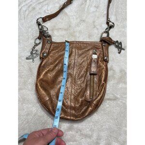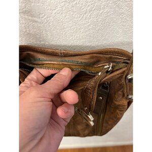 B. Makowsky Brown Leather Crossbody Bag With Zipper Pocket & Adjustable Strap pu