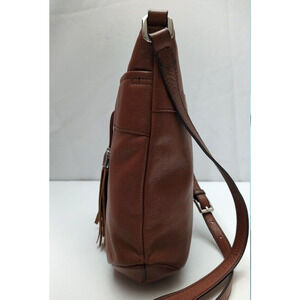 B. Makowsky Brown Leather Pocket Drawstring Tassel Crossbody Bag