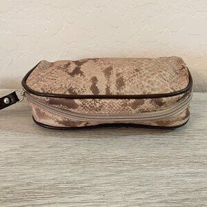 B Makowsky Brown Reptile Snake Print Pouch Wristlet with Strap