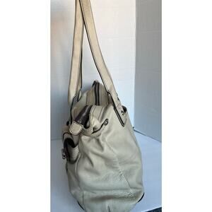 B. Makowsky Cream Off White Pebble Leather Brown Stitching Hobo XL Shoulder Bag