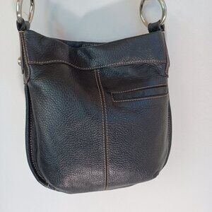 B Makowsky Black Pebbled Leather Crossbody Bag
