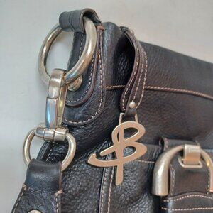B Makowsky Crossbody Bag Black Pebbled Leather Silver Tone Hardware