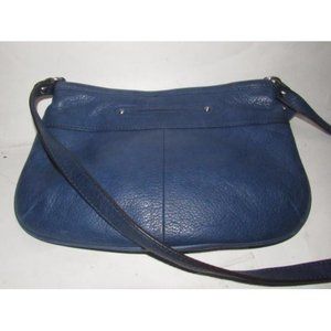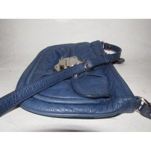 For sale is a B. Makowsky, denim blue buttery soft leather cross body or shoulder purse with a top zip closure, front and back exterior pockets, and bold chrome accents! This is a perfect, denim blue leather purse by B. Makowsky that will never go out of style!
