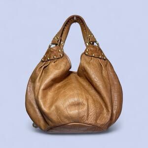 B Makowsky Genuine Leather Berlin Ball Tote Satchel Shoulder Bag Vachetta Brown
