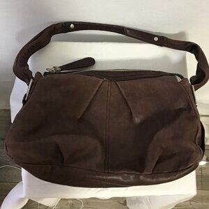 Beautiful 100% leather hobo bag in a soft brown colour with lime green interior. Features Silver accents, small exterior pocket, inner zipped pocket and 2 pouches. Zipped closure.