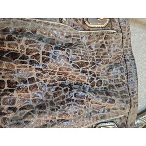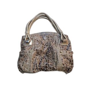 B. Makowsky Gold Snakeskin Pattern Linen Satchel Purse