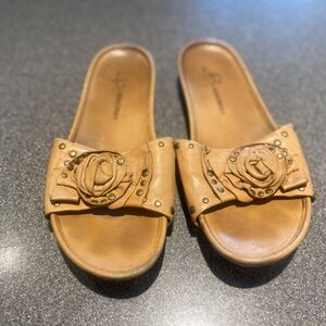 B Makowsky Jade Slides Genuine Leather in Beige - Size 9.5M