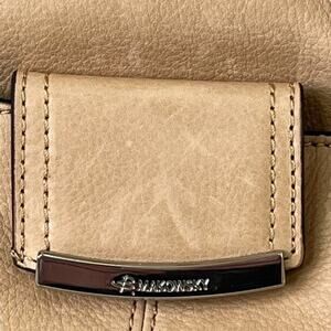 B. Makowsky Leather Handbag Shoulder Strap Storage Pockets Neutral Tan Purse