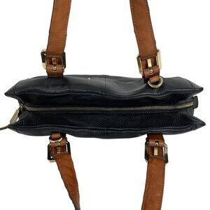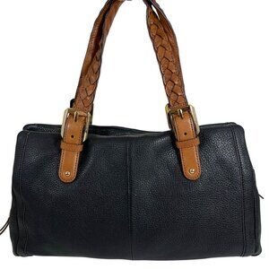 B Makowsky Leather Slouchy Hobo Shoulder Bag Braided Handles Black/Camel EUC
