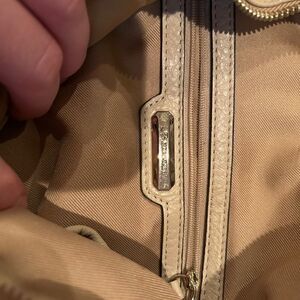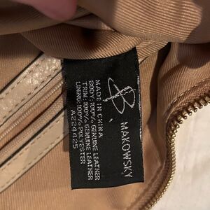 B. Makowsky Leather Bag with Crossbody strap. Cream leather with snakeskin trim