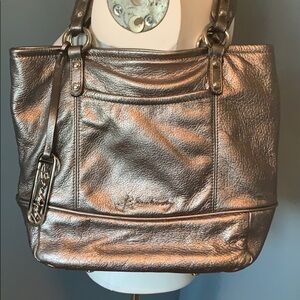B. Makowsky Metallic Pewter Leather Handbag Purse