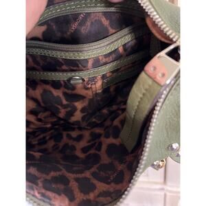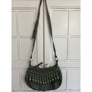 B. Makowsky Olive green leather shoulder bag with gold & silver bling