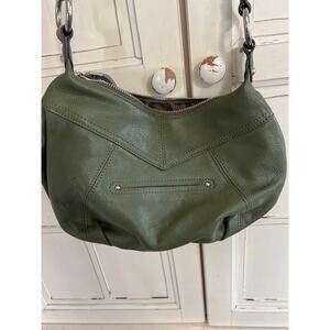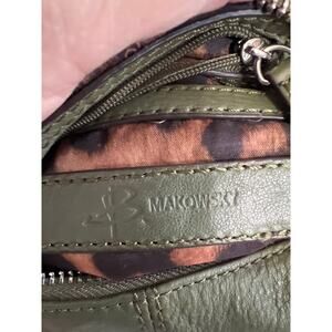 B. Makowsky olive green leather shoulder bag in excellent condition. Gold & Silver bling. Adjustable strap. Measures about 13x7 1/2”. Nice and clean with no flaws.