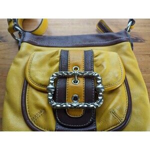 B. Makowsky Organizer Mustard & Brown Genuine Leather Messenger Cross-body bag