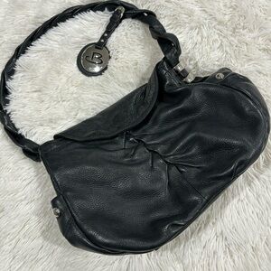 B. Makowsky Pebbled Black Leather Braided Strap Purse