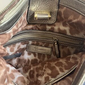 B. Makowsky Shoulder Crossbody Bag Purse Gold Metallic Leather Turn Lock Bucket Dust Bag
