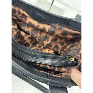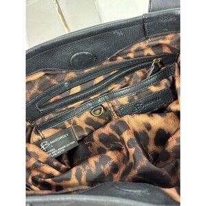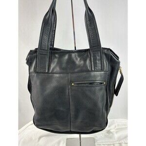B Makowsky Shoulder Bag Tote Black Leather Brass Chain Hardware Pockets
