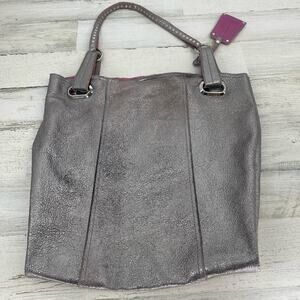 B Makowsky Silver Metallic Large Tote Bag Leather