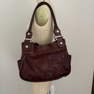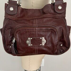 B Makowsky Soft Leather Hobo Shoulder Bag Purse Cheetah Print Lining Brown
