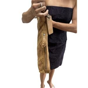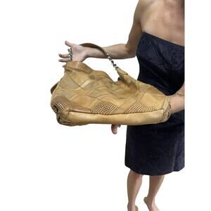 B. Makowsky Tan Leather Patchwork Hobo Shoulder Bag