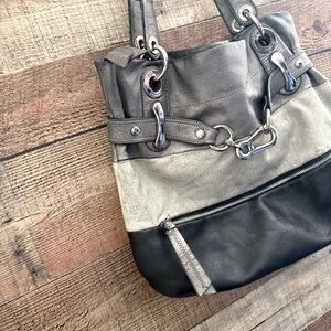 B. Makowsky Tri Color Stylish Genuine Leather Large Bag