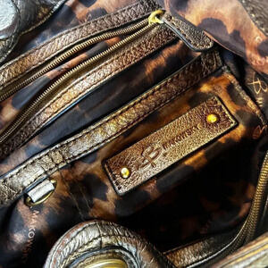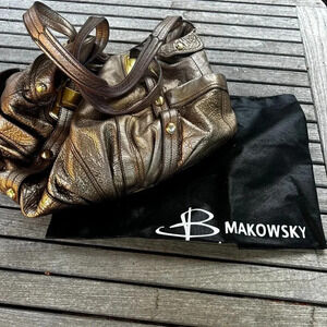 B Makowsky Vintage Bronze Gold Leather Slouchy Hobo Bag Dust Bag