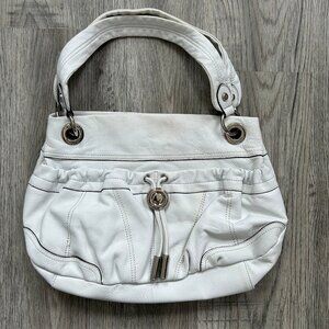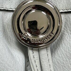 B. Makowsky White Leather Shoulder Bag Leopard Lining Boho Chic L