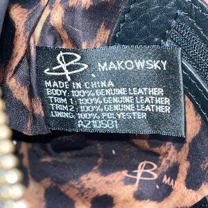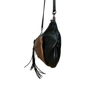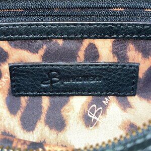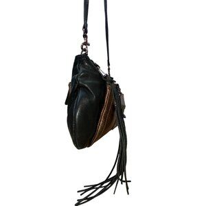 B. Makowsky Women’s Black & Bronze Leather With Fringe Zippered Crossbody Bag