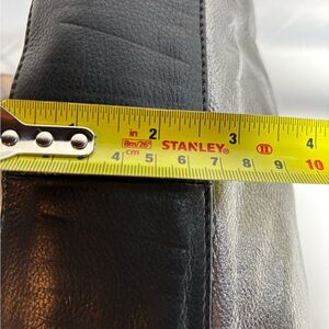 • Features: Interior pockets, a center zip compartment, key hook, exterior pockets and leather zipper pulls.