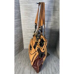 B. Makowsky Womens Shoulder Bag Beige Black Leather Inner Pockets Dual Handle M
