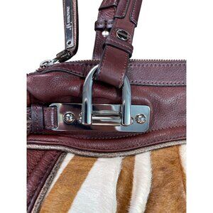 B. Makowsky Zebra Leather Shoulder Handbag Red/Brown Womens Bag SKU 9182