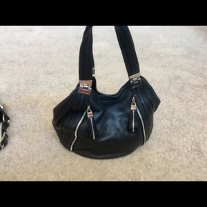 This is an excellent lightly used condition. It is made of all leather with silver detail is on the large side for a purse.