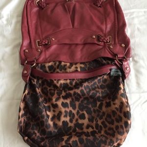 B. Makowsky burgundy leather purse with rose gold hardware. This fabulous bag has a center zip pocket, several back wall pockets (including a zippered pocket) & 2 exterior pockets. Secured by a magnetic snap closure.