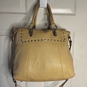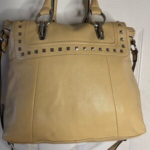 B Makowsky leather cream satchel/Shoulder bag silver tone studs accent