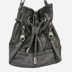 B. Makowsky metallic leather snake print drawstring bucket/shoulder bag.