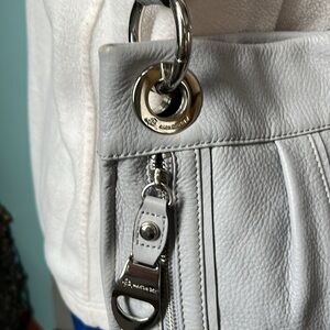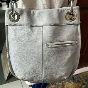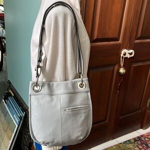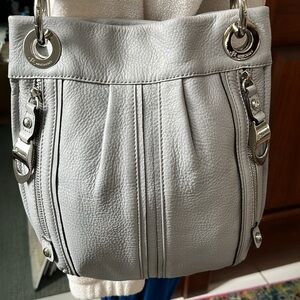 B. Makowsky shoulder/Crossbody bag leather Light gray Silvertone Hardware EUC