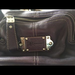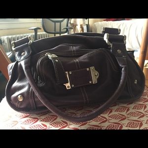 Lovely soft leather, extremely good quality vintage. The violet is deep, can be worn as a neutral, rather than overly loud. The closure is by a magnet (revealing a fun leopard-print cloth interior). Both hardware and leather are in excellent condition. A surprisingly roomy bag: the generously portioned material allows it to open widely. Hope it may find a good home ;)