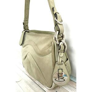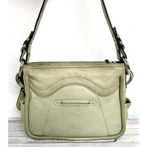 B. Makowsky SHABBY MOSS GREEN GENUINE LEATHER ZIP TOP HOBO SHOULDER BAG HANDBAG