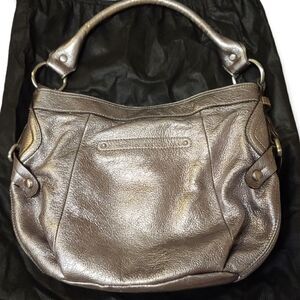 B. Makowsky Silver Metallic Leather Hobo Bag
