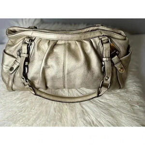 B Markowski Metallic Silver Color, leather Satchel Handbag, Designer Handbag