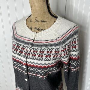 B Moss Lambswool Angora Cardigan Sweater Sz M Fair Isle Nordic Winter Vtg 90s