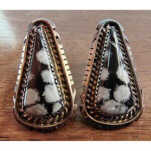 Handcrafted Navajo earrings featuring stunning White Buffalo Turquoise set in sterling silver. These elegant pieces offer timeless beauty and cultural significance, perfect for enhancing any jewelry collection. Signed B. Piaso these beautiful works of art measures just under 1.5" in length. Please see all photographs as they are part of the description. Shipped with USPS Ground Mail.