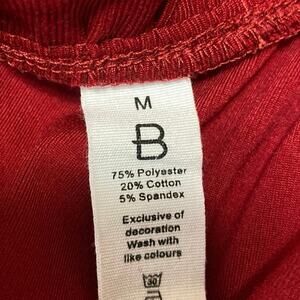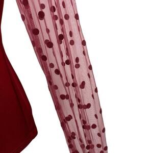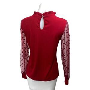 B Red Long Sleeve Mesh Polka Dots Ribbed Knit Mock Neck Ruffle Blouse Top Size M